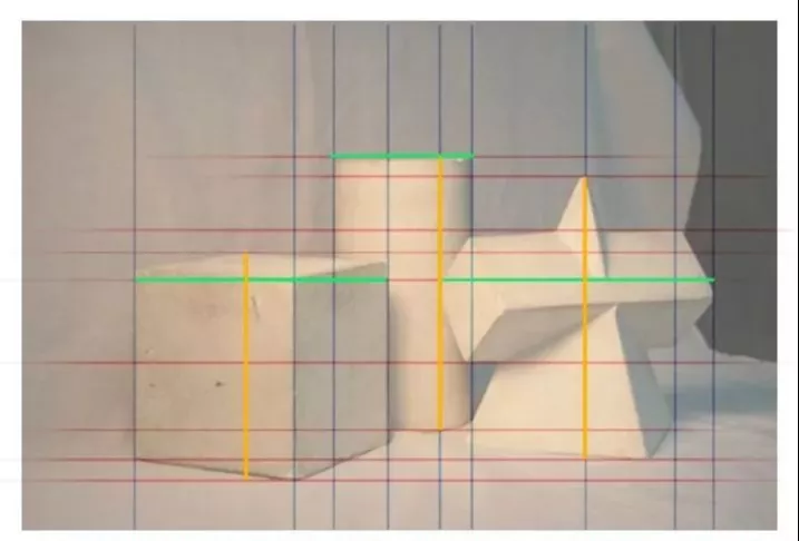 比图通过上面的网格观察法,找到对象在画面的大致的位置关系之后(下图绿线),我们可以再结合