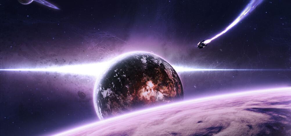 确认亮面、暗面及前景,这里用了一些比较大的陨石作为前景,比较小的作为远景保证了画面的大小平衡。星球采用了背光的手法处理,所以越靠近星球轮廓边缘的会越亮。反之则越暗;