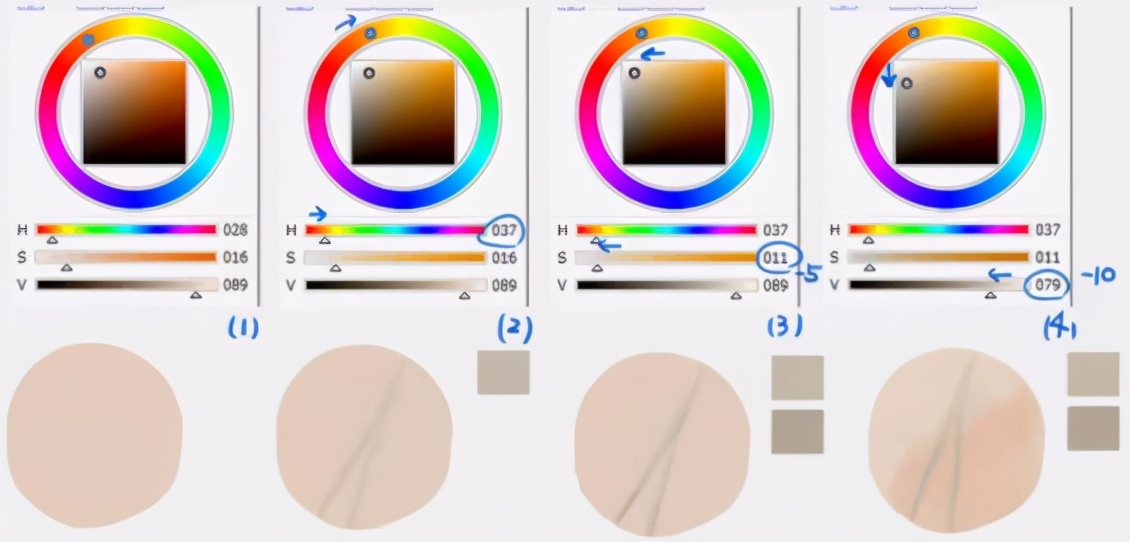 将色相环稍微错开一点黄色(紫色血管的话向红侧错开)
