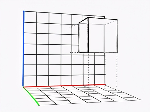 通过在格子辅助线上的投影落点,先确定墙面的投影位置