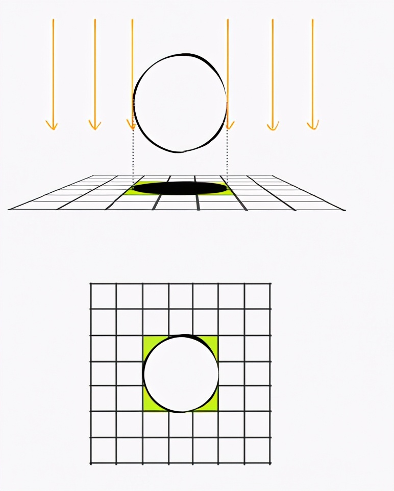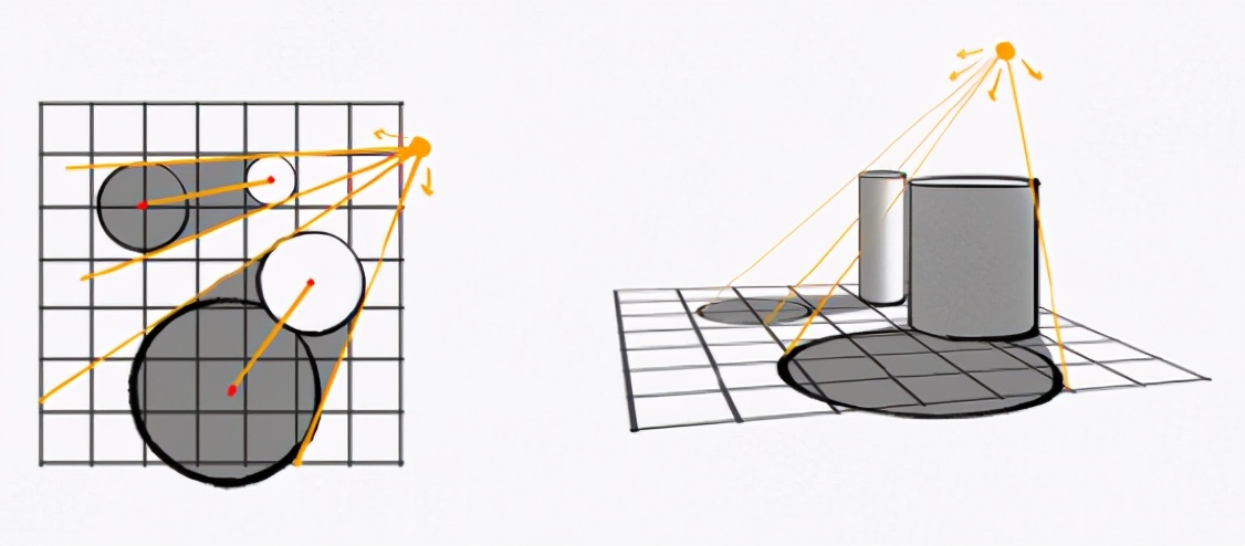 光照角度垂直于地面的时候,物体的投影就会在正下方