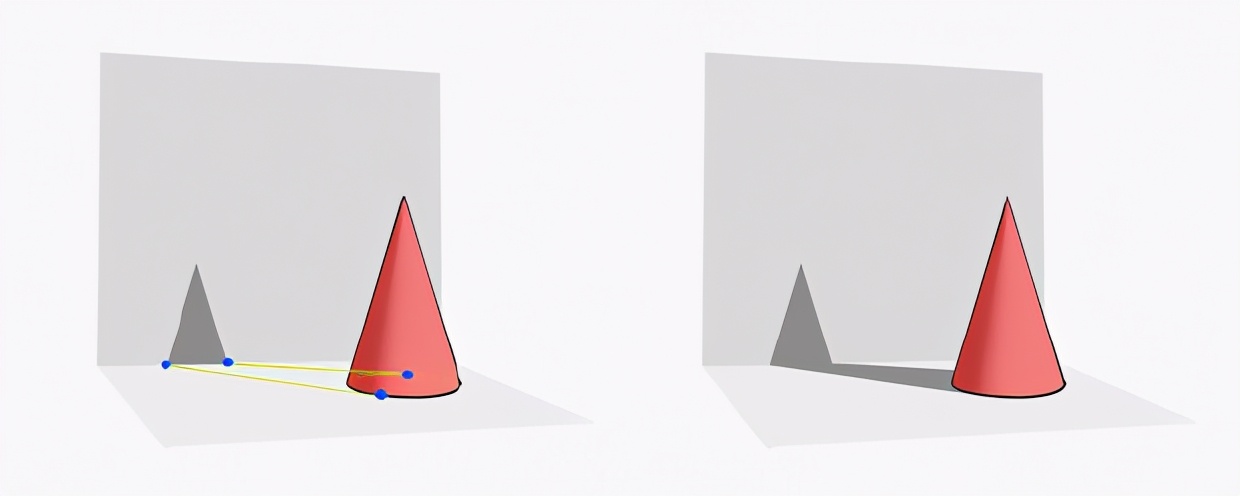 换做点光源,也是一样的道理,拉长光照角度的延长线