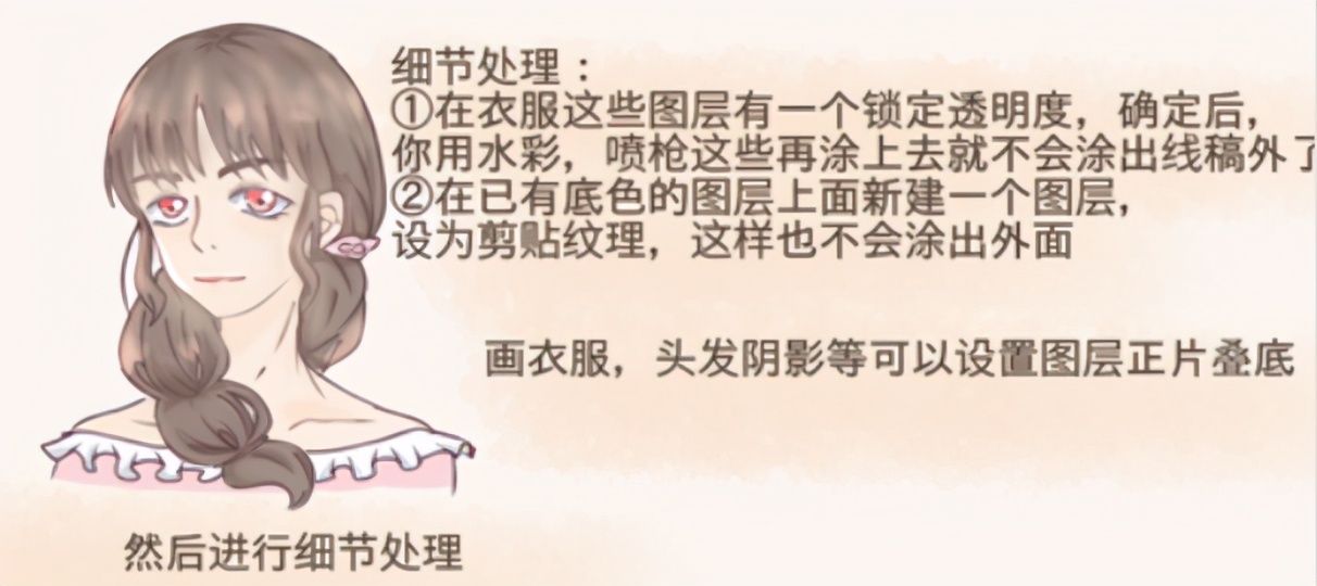 涂色记得都要分开来,不要都涂在一起衣服归衣服的,头发归头发的不然会很杂很乱还修改不好