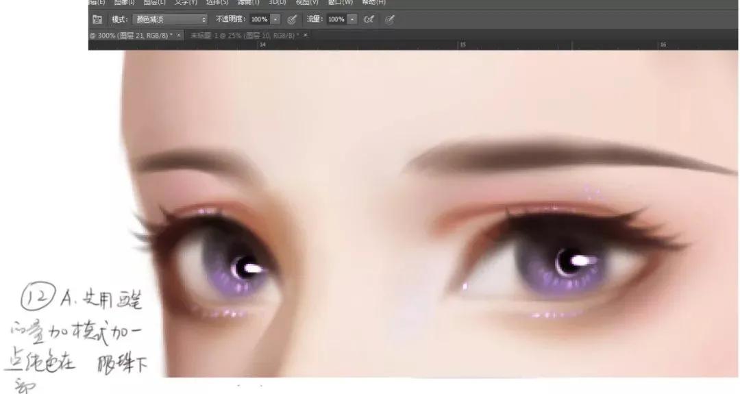 可能是老师觉得眼睛部位有些偏灰,这里又补充了一些纯色