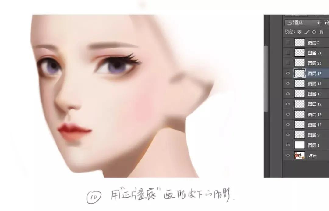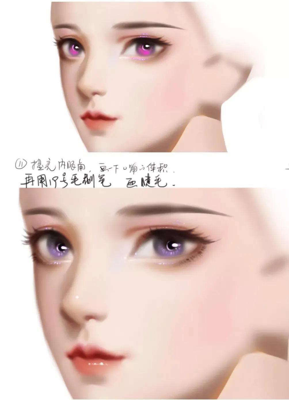 该有的暗部和色彩都补齐了,剩下的就是一些额外的元素了,比如眼睫毛,在这一步我们终于可以补上了。