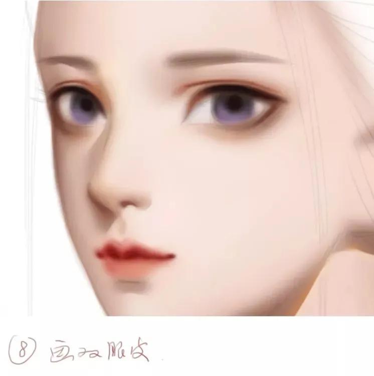双眼皮不要单单一条线了事,那样看着会很辣眼睛的。请在网上多找一些实际的参考图看看,根据已有的图片刻画。
