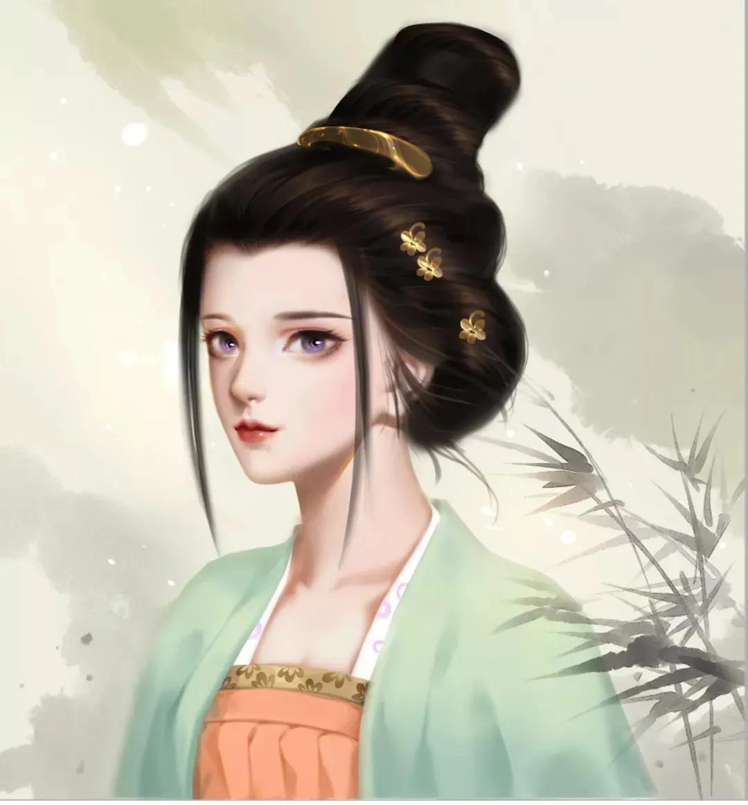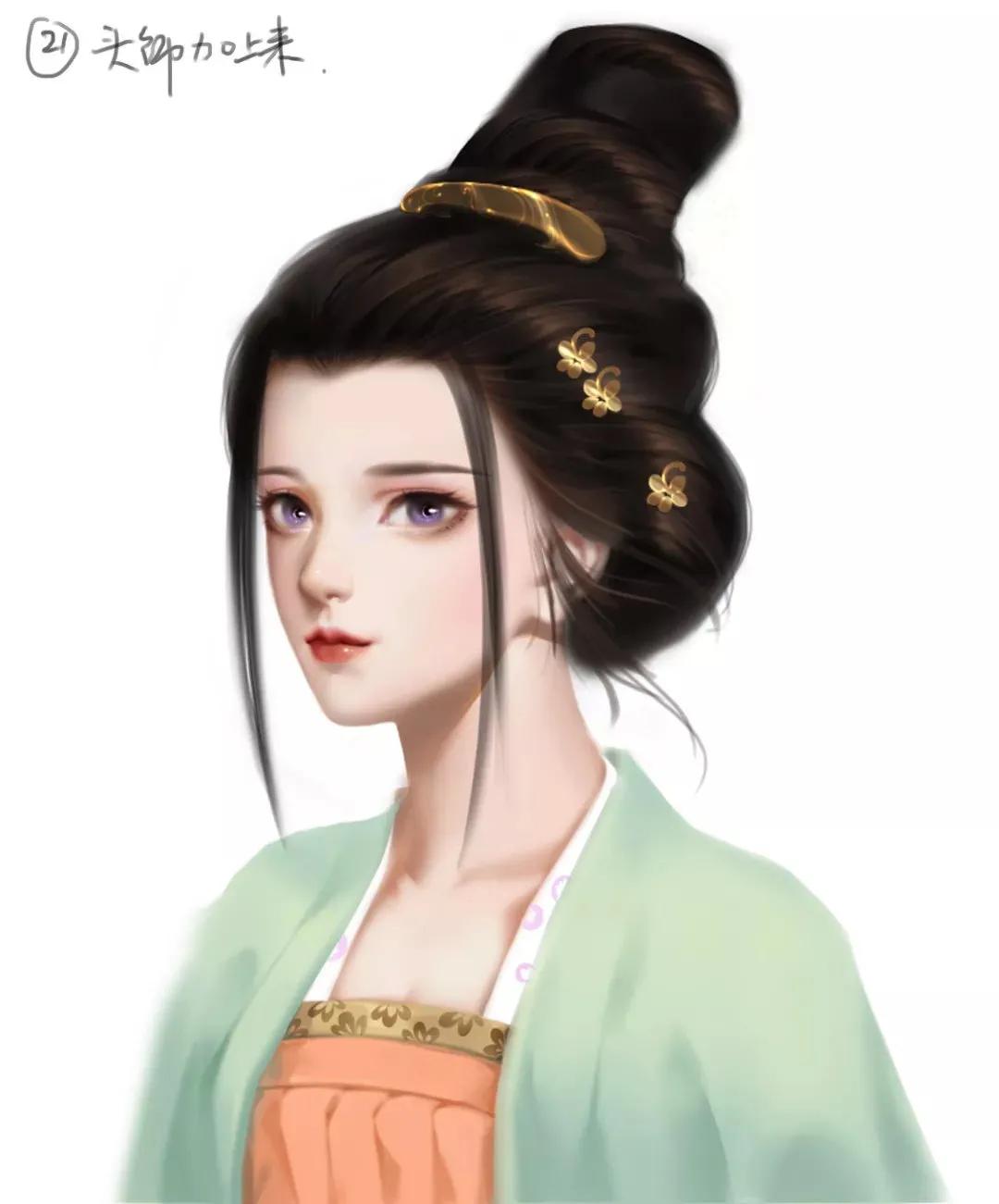 一般来说,头发的颜色可以考虑棕黑色,这种颜色和脸部的色彩比较接近,容易处理,也符合一般古风女性的感觉。