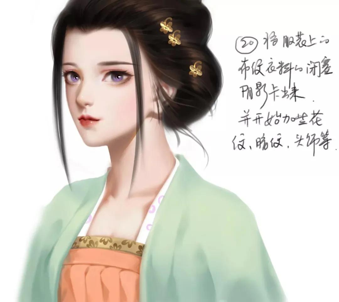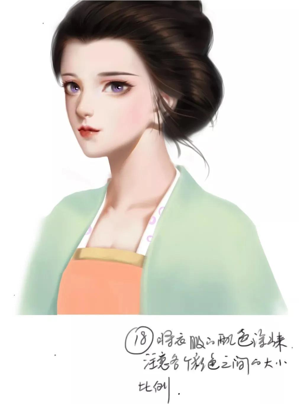 由于是以头像为主的特写,因此服饰一带而过就可以了。不过总体来说还是要和古风的主题切合。