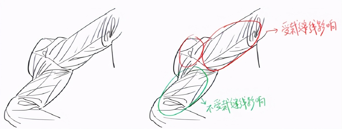 裁缝线:不要漏画了裁缝线,以及部分情况下裁缝线会影响衣褶走向。