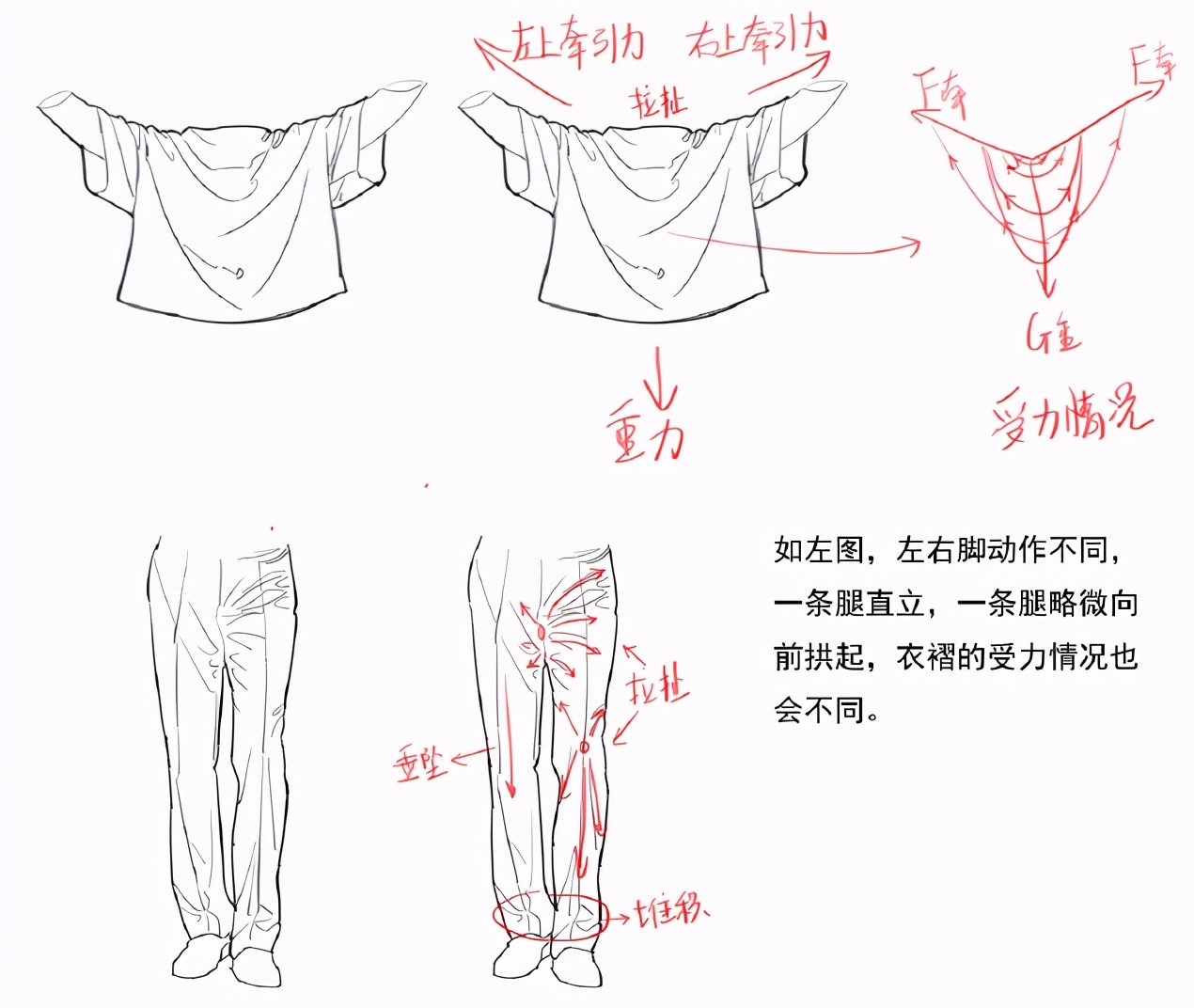 画衣服纹理要注意什么?教你如何通过分析受力画出衣褶纹理!