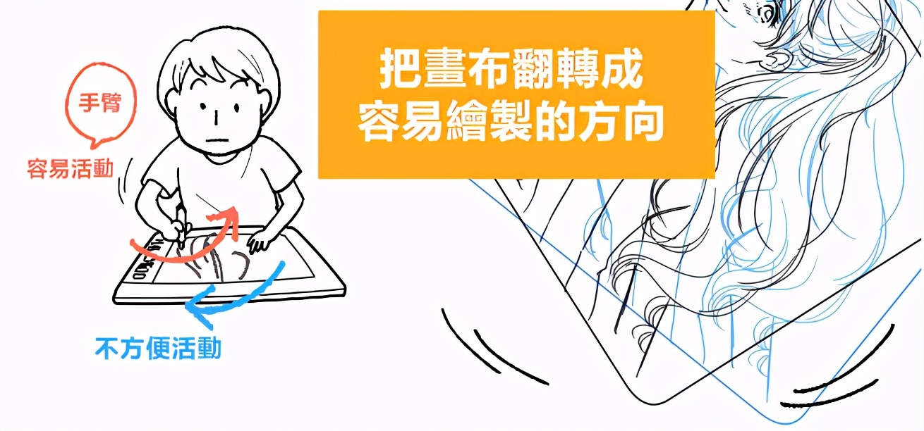 这个道理在描绘所有的线条时都通用,手腕方便活动的方向就是容易描线的方向。
