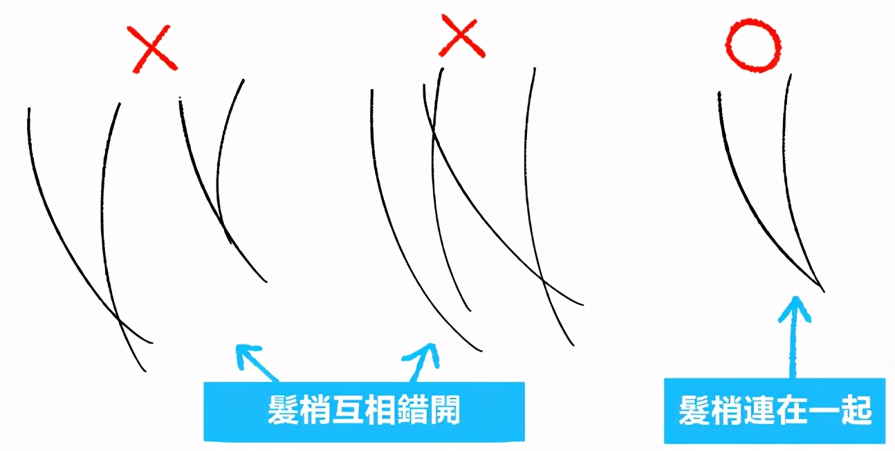 另外也要注意别让发梢的粗细太均一,只要交错绘制粗细不同的毛束,或在绘制粗的毛束后帮它搭配几丝细的毛束,就能给人自然的印象。