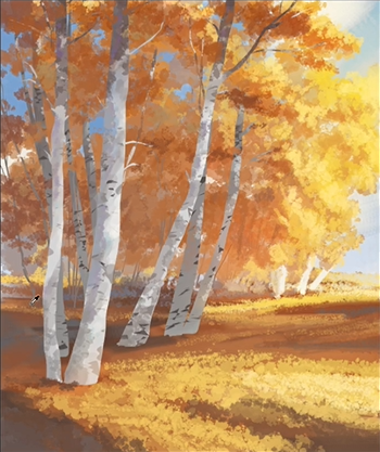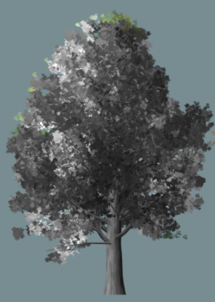 再新建一个叠加图层,用喷枪给树上色,上色时注意下光影关系就好。