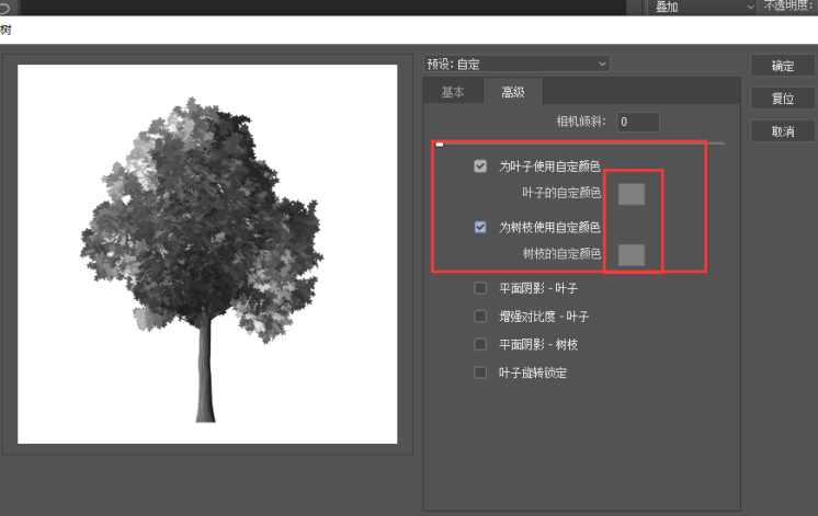 是长是短,由君任选。另外,建议在"高级"选项里把树的颜色调成灰色。这样方便我们后续上色。