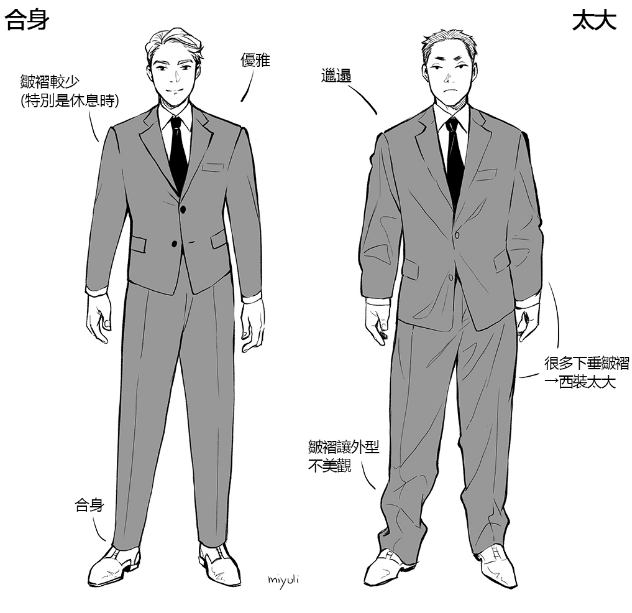 合身的衣服在设计时通常会避免布料出现皱褶,让外观看起来乾淨美观。衣服如果太紧或太松就会出现很多皱褶,不但不美观,也无法呈现出漂亮的身体轮廓。