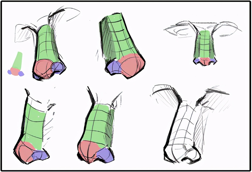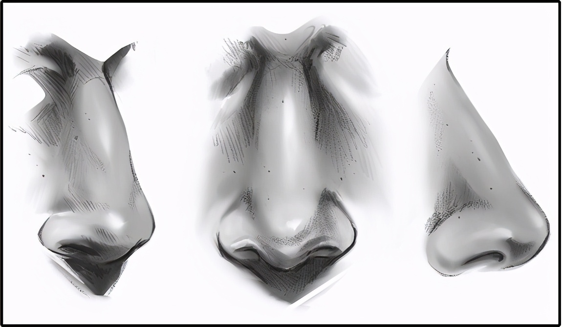 在下笔用各种画风或形状绘制鼻子之前,最好先理解它的基本构造。