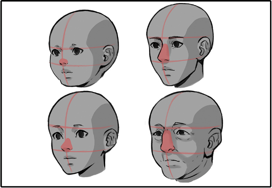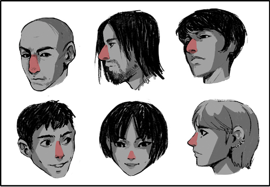完全理解鼻子的基础构造后,我们要把重点转向如何在角色身上,区分使用正确类型的鼻子。