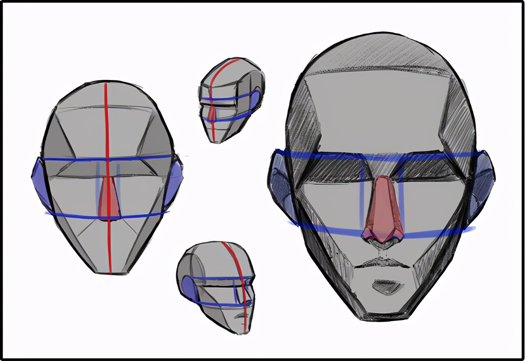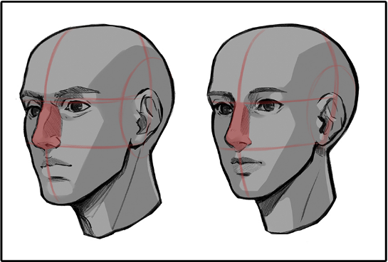 理解鼻子的基础构造后,让我们一起看看怎么把它安排到脸部上吧。这时必须考虑它和其他脸部要素之间的比例。