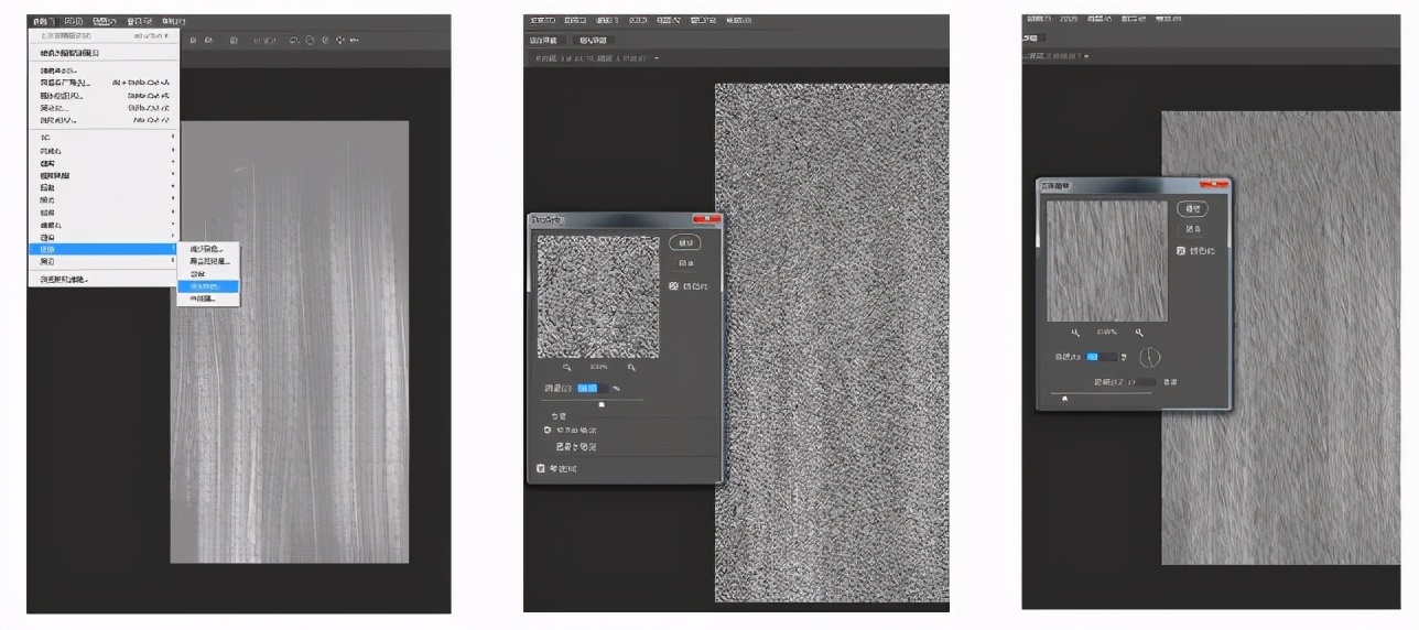 第三步:将上一步得到的图层已合并,利用滤镜效果颜色--勤感模糊,步骤如上,这步的目的是创造出一个肌理材质图层