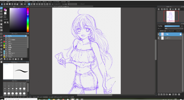我在之前画好的粗略草图的基础上,做了一个线描的图层,画出越来越多的线条。