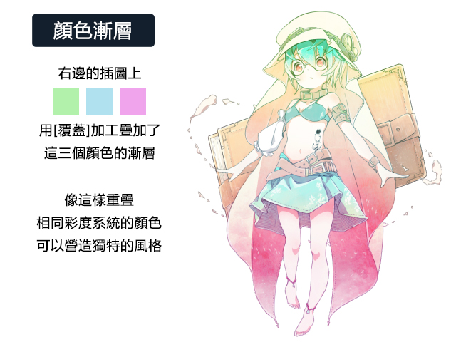 这样一来,颜色就能统一为「淡薄的颜色」,使整体看来像是一张「淡色」的插图。