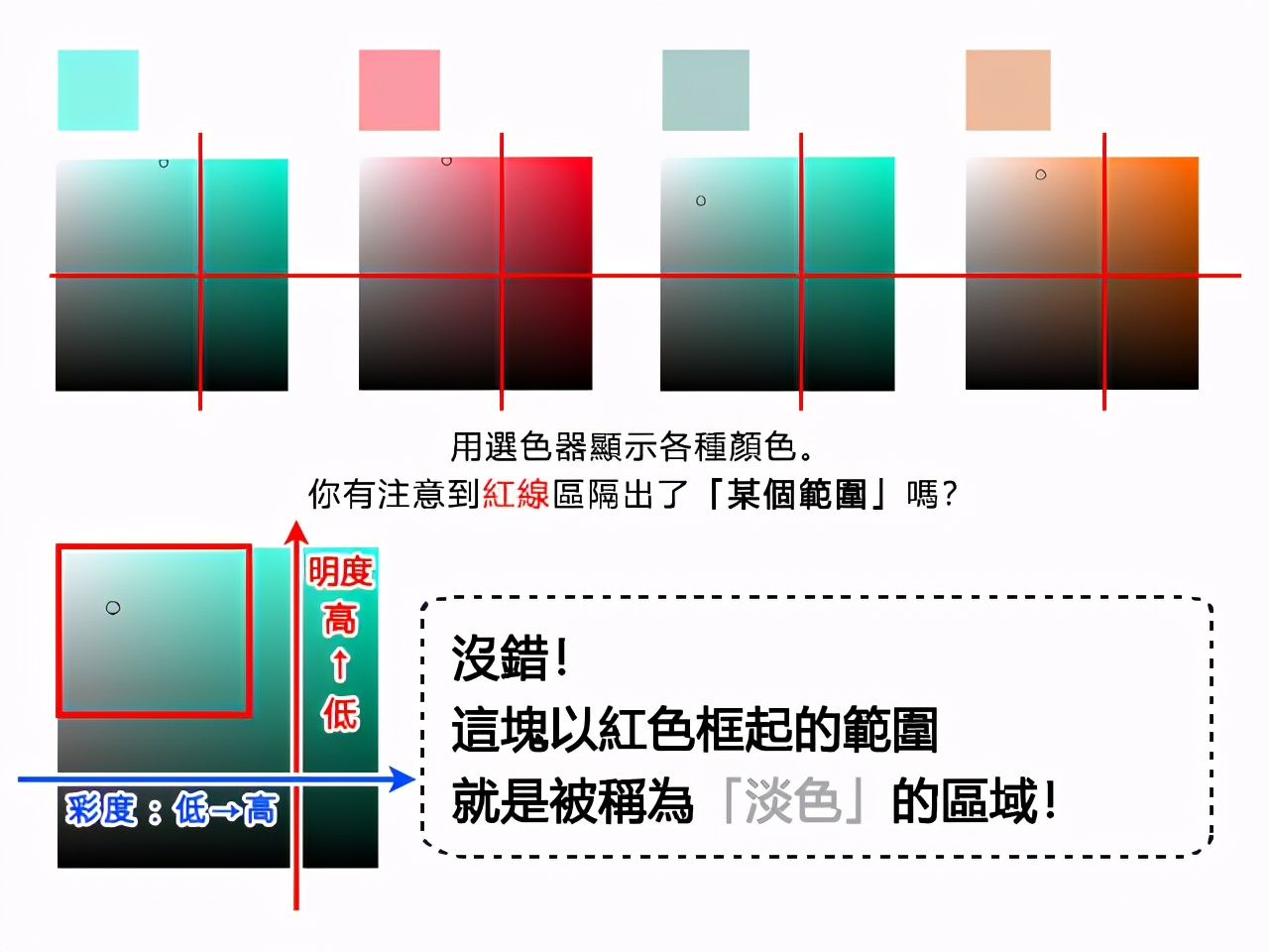 首先,淡色指的是什麽样的颜色呢? 这边要使用我准备的插图来进行说明。