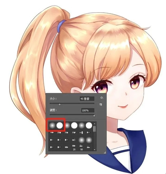 只要软件自带的【柔边圆】和【硬边圆】笔刷,就可以用来画腮红啦