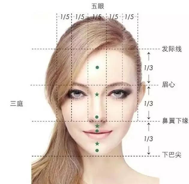 青色下颌角:这里是整个脸型的最大转折点,影响脸型的最关键转折点,男性棱角会更分明些,女性更曲线弧度柔和