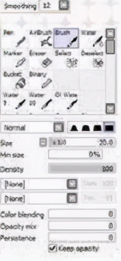 把阴影层拉到底色层上面。然后选个好看的颜色(我用的是紫罗兰色)。然后是选择笔刷(就是下图的“笔”)按照下图设置。