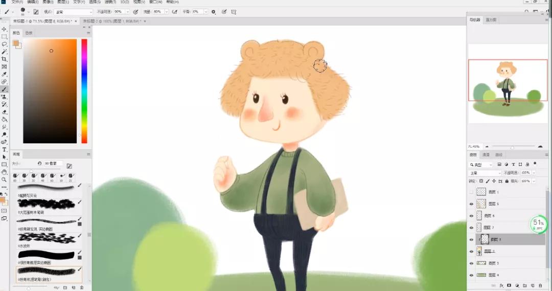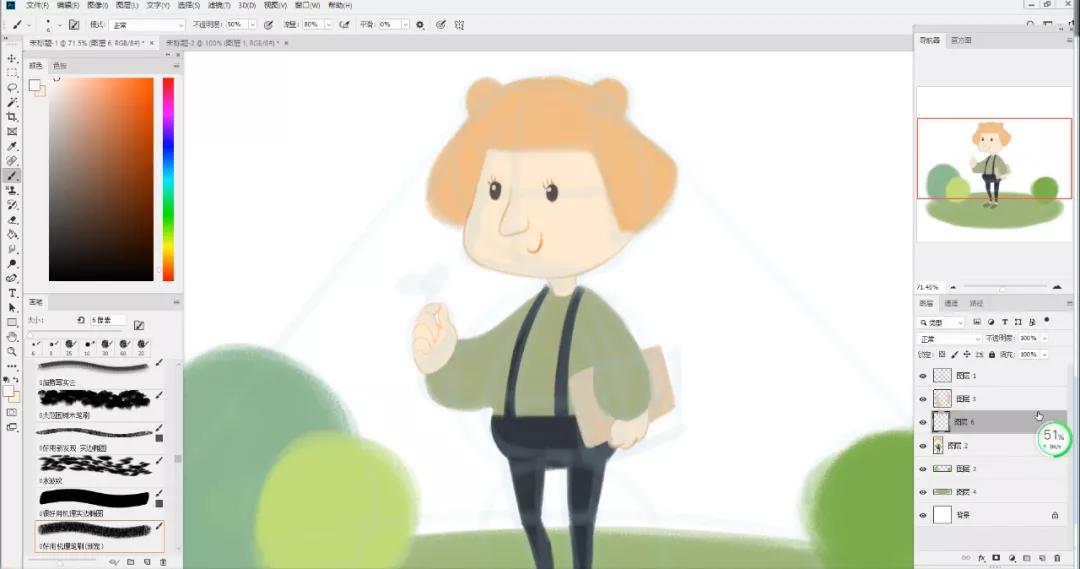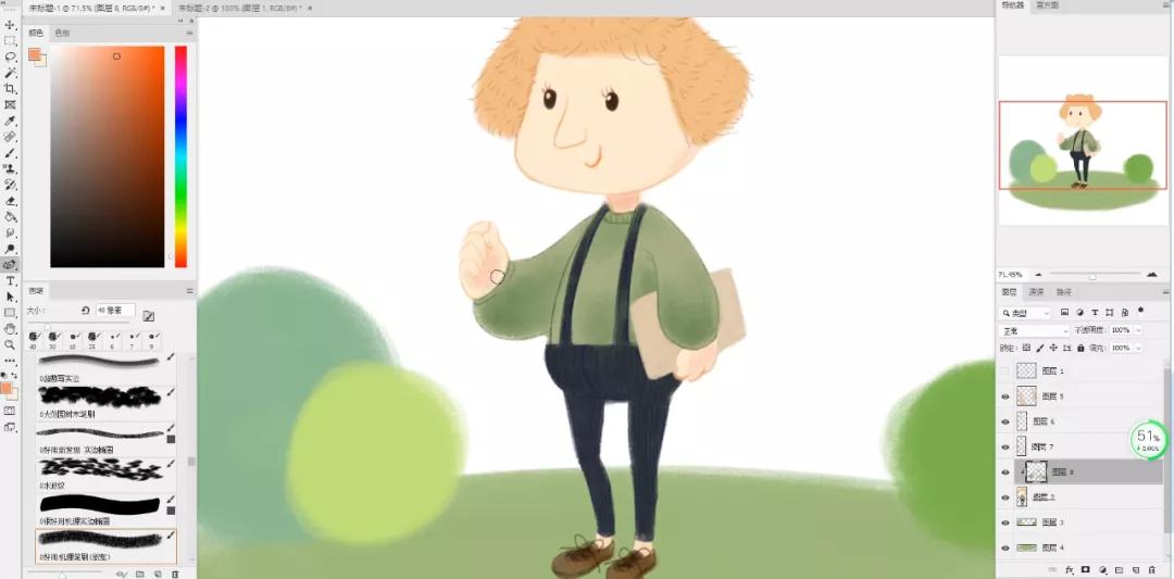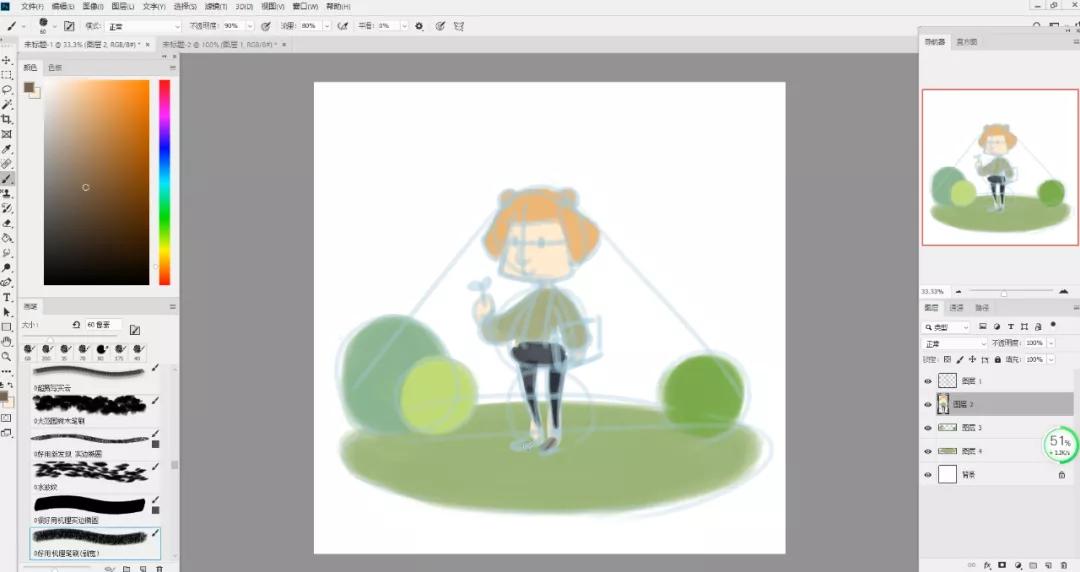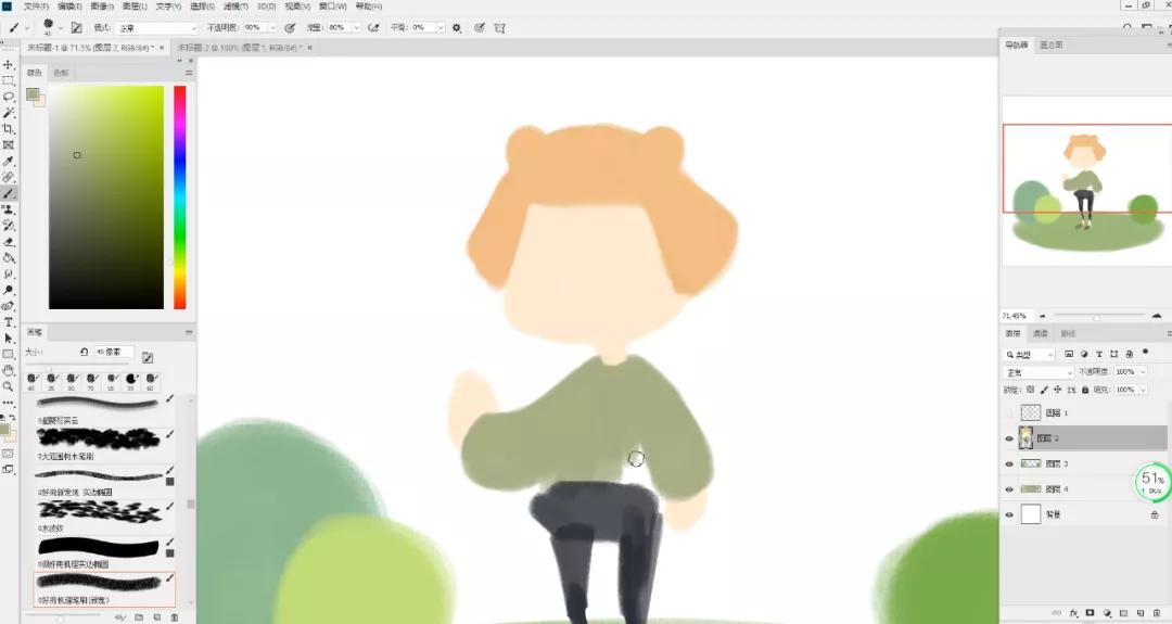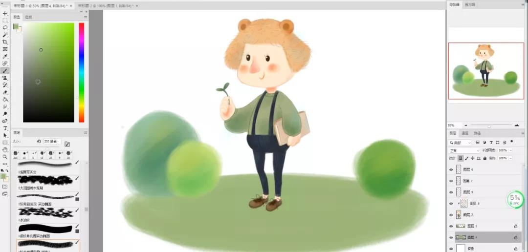 添加一点细节帮灌木丛加一点阴影,草地丰富一下颜色