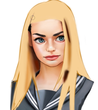 初学者经常犯的错误是,通过逐渐放大图片进行绘制,从头到尾涂刷头发的细节。。。我认为这是造成不良后果的主要原因。这看起来可能并不直观,因为头发必须考虑小股。但首先,你必须画一个整体的形状。实际上,当你这样做的时候,你可以完全关闭笔压,尽可能均匀地涂上它。