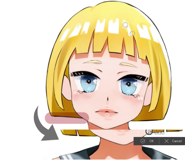 用卡通中经常看到的白色小方块强调高光,并清除底部的一些区域,使头发看起来不那么重。