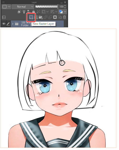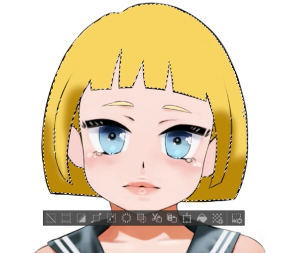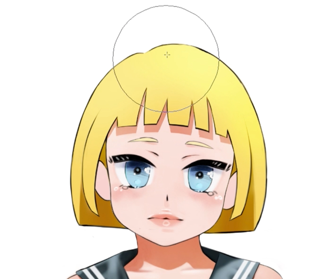 简单秘籍--如何在角色的额头上绘制由刘海产生的阴影?在正上方创建层,并选择较暗的颜色。使用“填充”工具填充头发。然后移除底部的颜色部分,并向下移动形状。使图层在“乘积”模式下不可见,并使用“自动选择”工具选择所有毛发,而不会受到干扰。显示“乘积”层并清除选区中的所有项目。