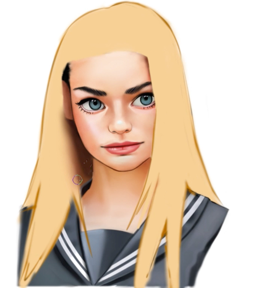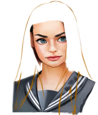 之前我创作了肖像的背景。例如,在头发周围绘制了一个小而亮的白色股,这并没有出现在白色背景中。但最终,我决定去掉背景,因为我认为即使没有背景,肖像也会脱颖而出。其实因为脸比背景更亮,所以不太合得来。我决定让整个肖像画变暗,而不是让背景变白。但是,由于白色背景,所有小辫子都不见了,所以重新绘制成略暗的颜色。