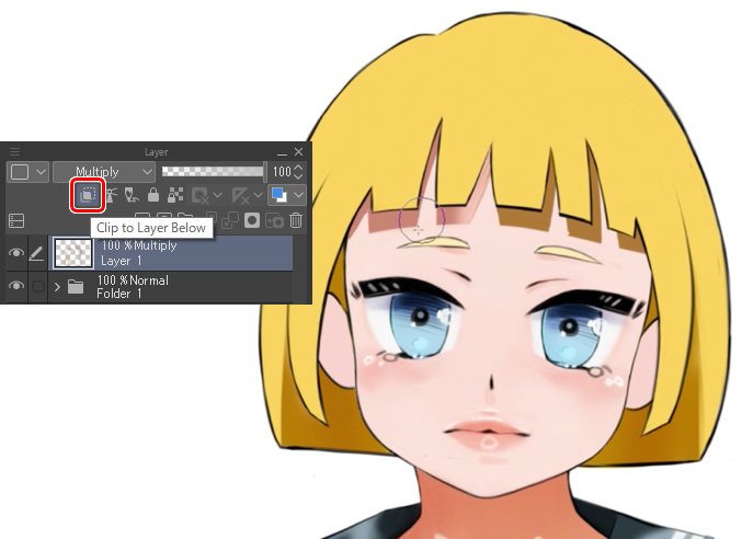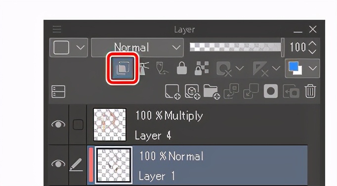 如果要在另一层上绘画,并且不希望偏离下图,请单击该图标以启用“从下层剪切”功能(设置的层上会显示一条红线)。