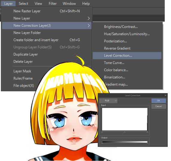 如果您感觉颜色暗沉,请在“图层”>“新色调校正图层”中选择“色阶校正”。然后,在新窗口中使用幻灯片来增加所需的饱和度。
