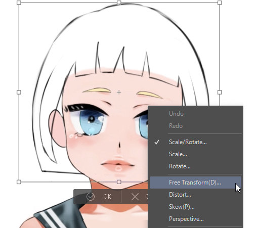 缩小时,整个草图不够长,选择它作为“套索”工具(L键),然后使用Ctrl+T选择“自由变形”选项来增加、移动或扭曲草图。