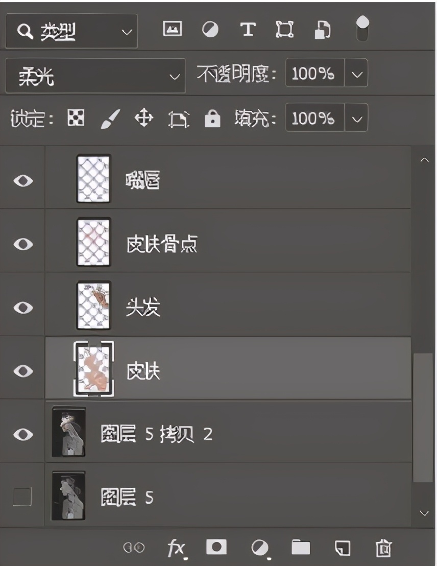 新建几个图层,图层属性改为叠加或者柔光(看个人喜好)。然后在对应图层画上物体的固有色