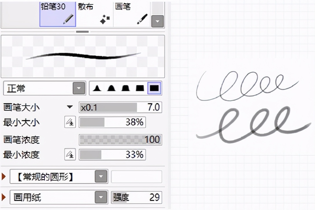 不知道为啥sai2里面没有铅笔30于是自己调了一个个人感觉巨好用的勾线笔刷,带点轻微的纹理现在大部分勾线都是这个笔刷