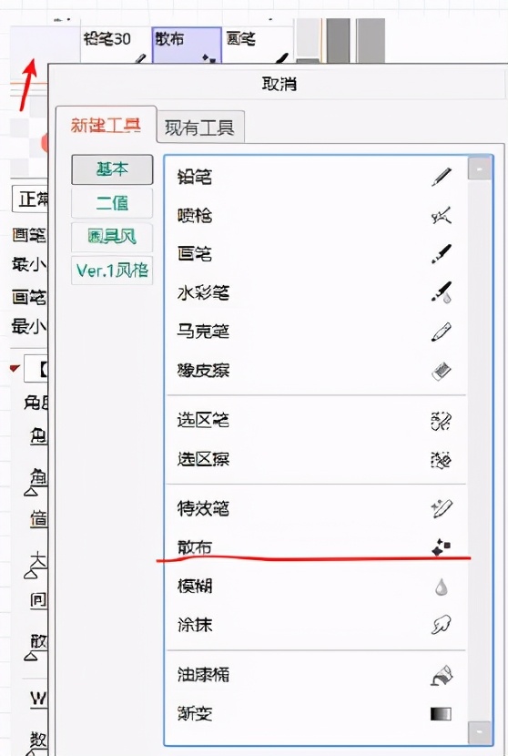 如果笔刷里找不到,可以点击笔刷栏空白处右键找到↓