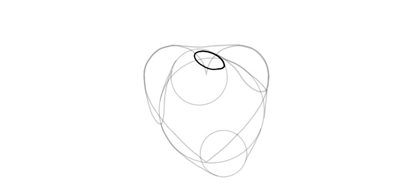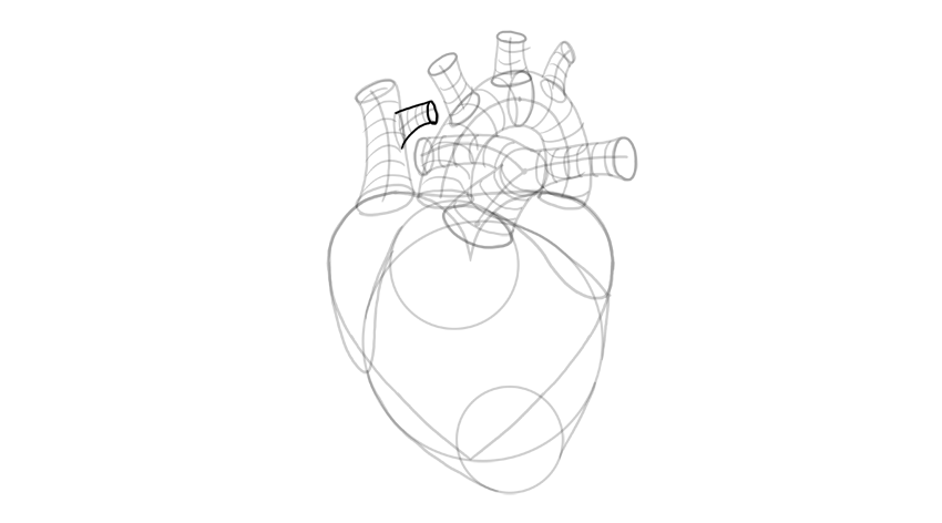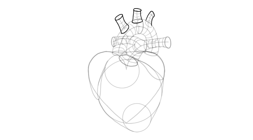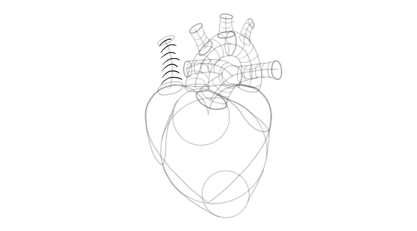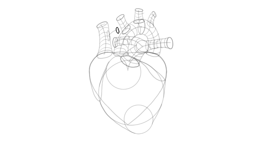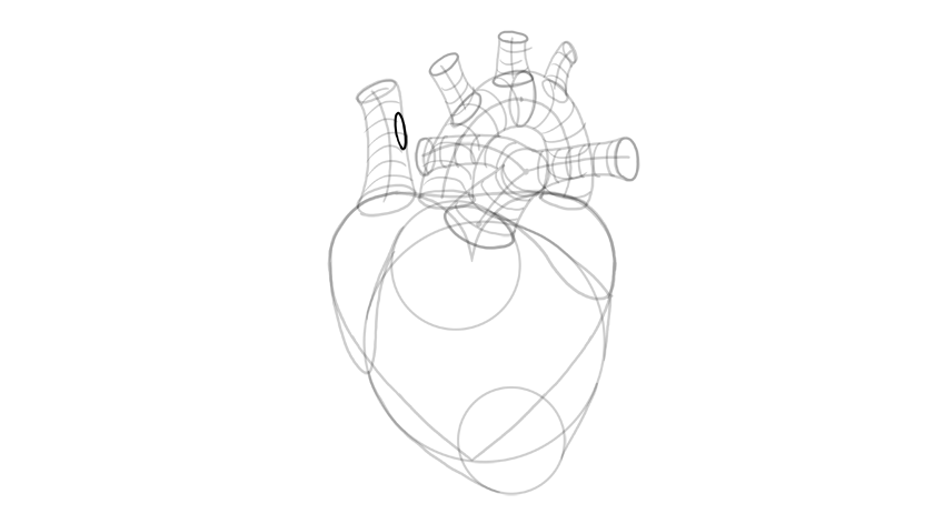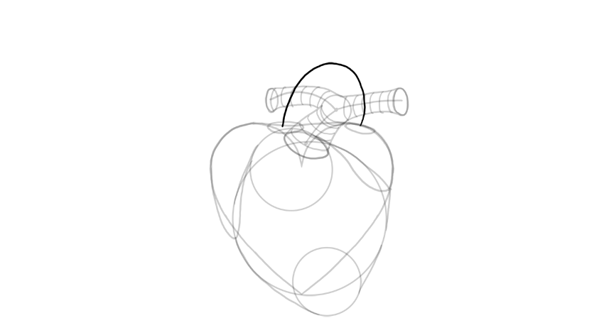 画一个几乎覆盖心脏的大圆圈,稍微向右移动.