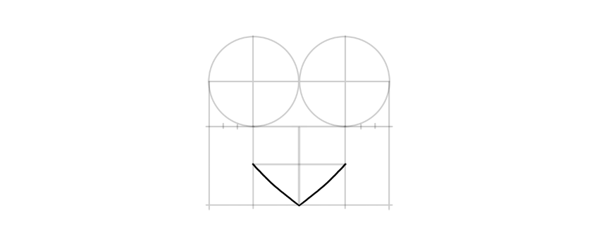 在下面画一条水平线,用两条垂直的线将水平线和圆的两端连接起来.