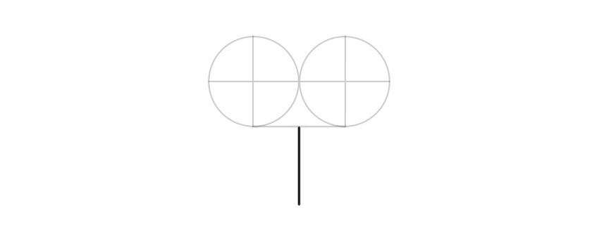 从这条线的中间再画一条线.它应该比圆的直径稍短一些.