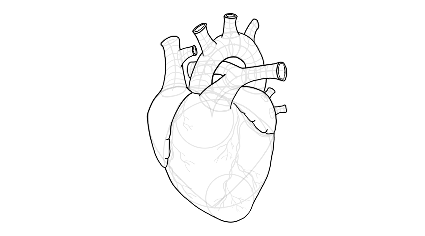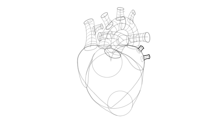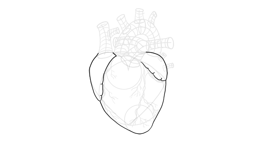用线条增加一些细微的阴影,以突出心脏的3D形状。