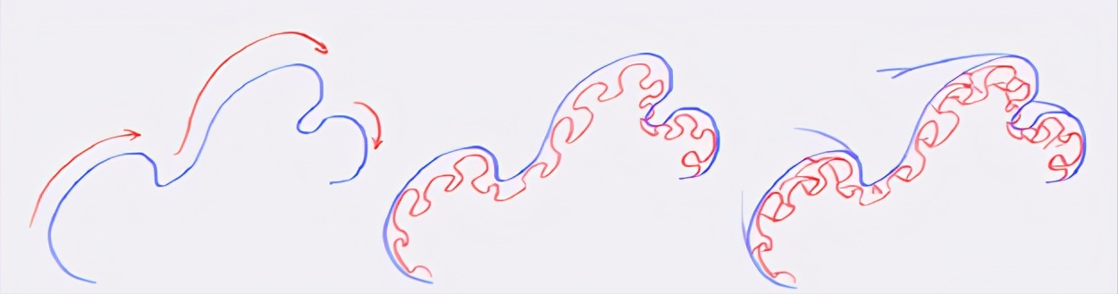 大小节奏变化→画出内部裙摆,想像成多个S型连在一起 →然后勾线,连接