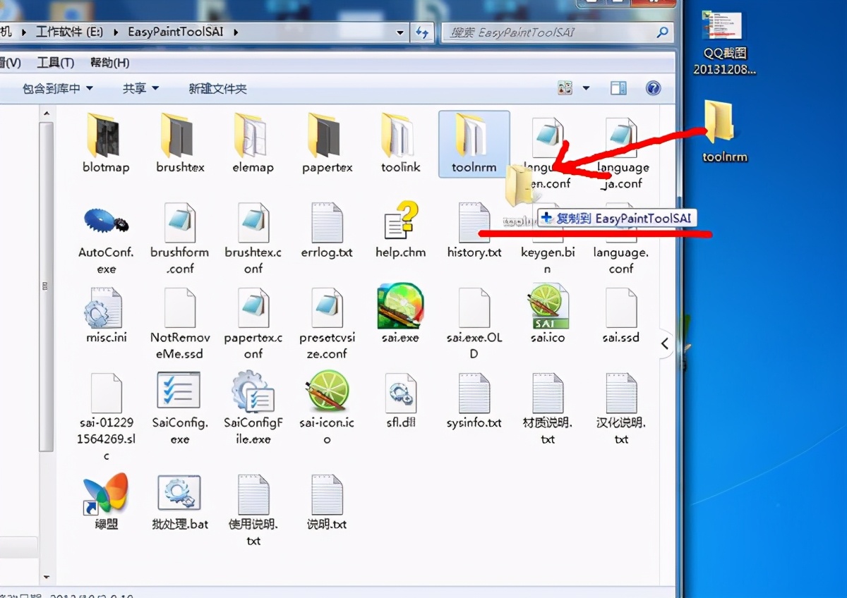 第二步:右键电脑桌面SAI的图标,打开文件所在位置,找到toolnrm文件夹,双击打开