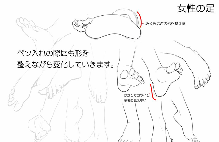 仔细观察这些女士的脚,可以发现小腿肚比较圆润光滑。后脚跟比较直,线条绘画时也不需要过多的起伏。