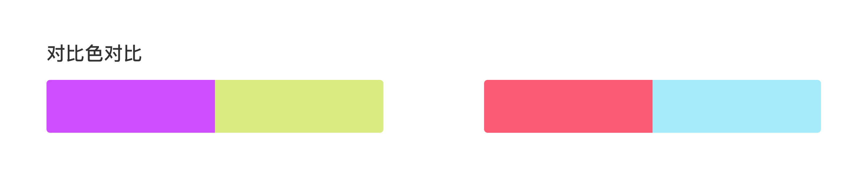 由对比色相构成的配色,可以分为由互补色或相反色搭配构成的色相对比效果,有黑白灰等明度差异构成的明度对比效果和纯度差异构成的纯度对比效果。如下图所示。
