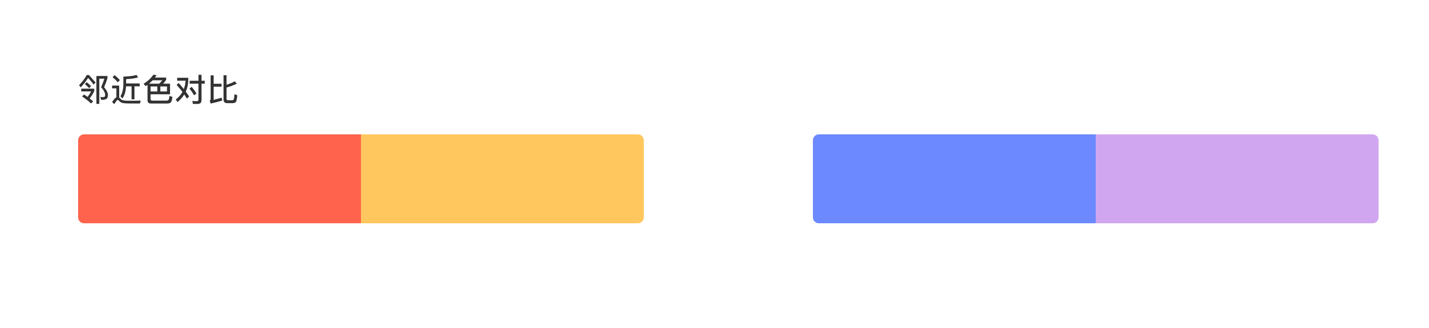 邻近色对比:色相环上相邻的二至三色对比,色相距离大约30度左右,比如:朱红与桔黄,朱红以红为主,里面略有少量黄色;桔黄以黄为主,里面有少许红色,虽然它们在色相上有很大差别,但在视觉上却比较接近。