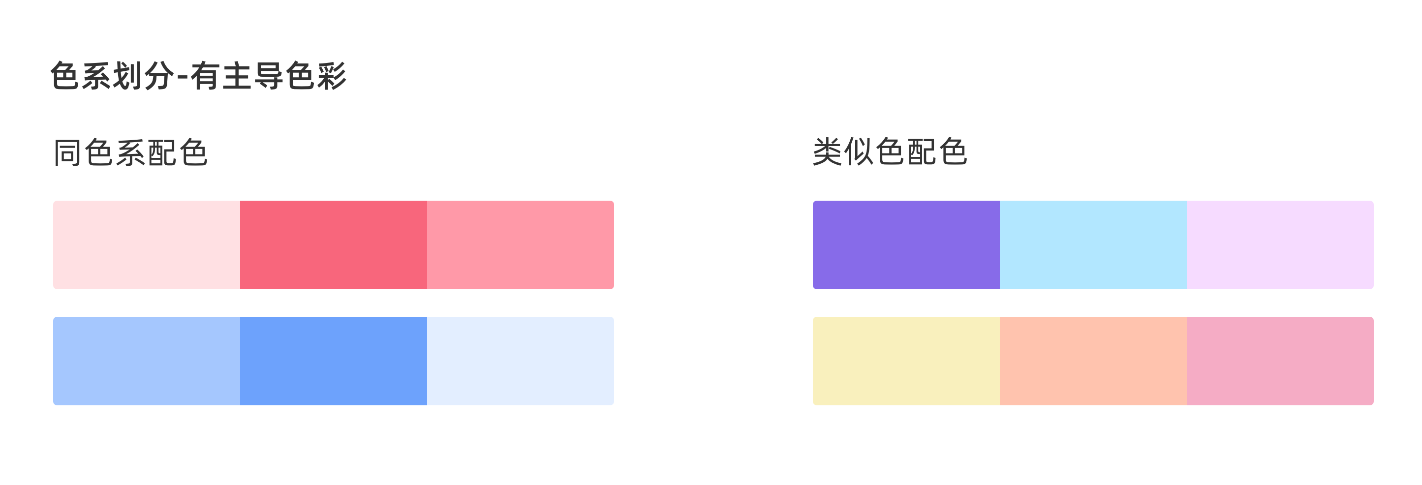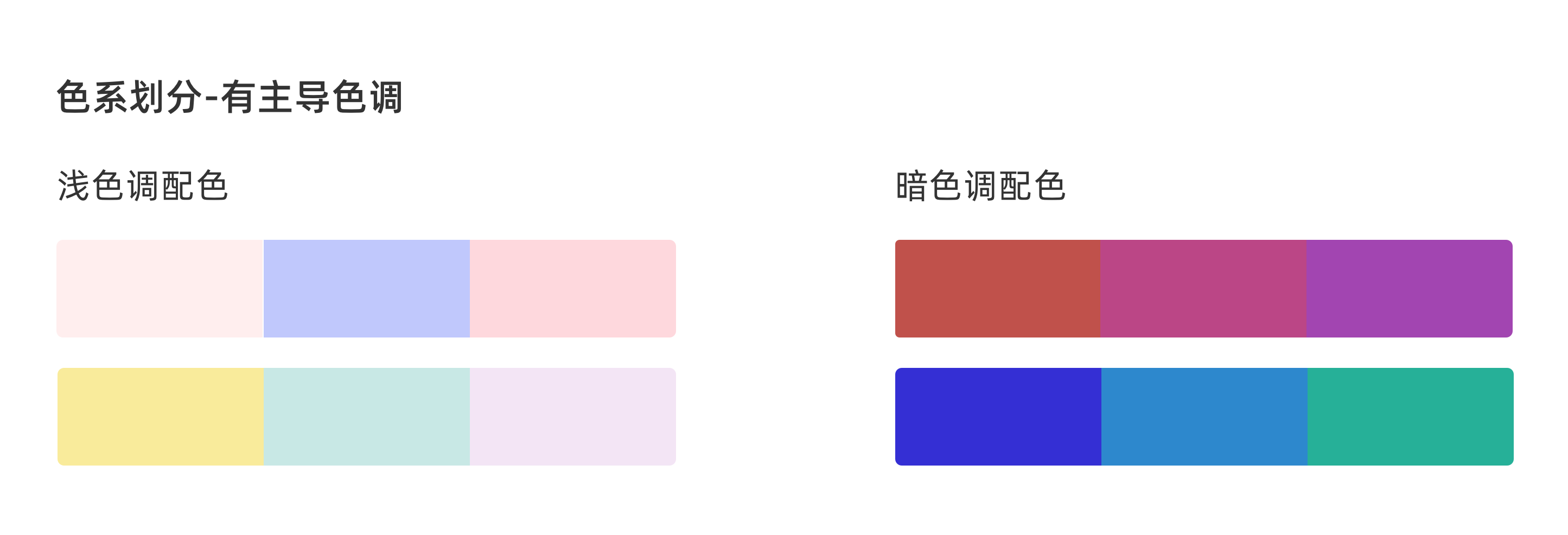 通过色系划分可以分为有主导色彩的配色和有主导色调的配色两类。